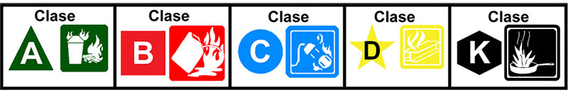 Existen cinco tipos de clases de fuegos y dependiendo del tipo de incendio deberemos utilizar un tipo de extintor u otro.